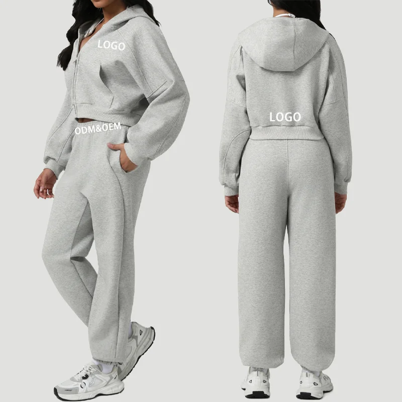 Women's Autumn/Winter Printed Embroidered Breathable Thickened Hooded Zipper Sweatpants Sweatshirt Jacket Casual Two-piece Set
